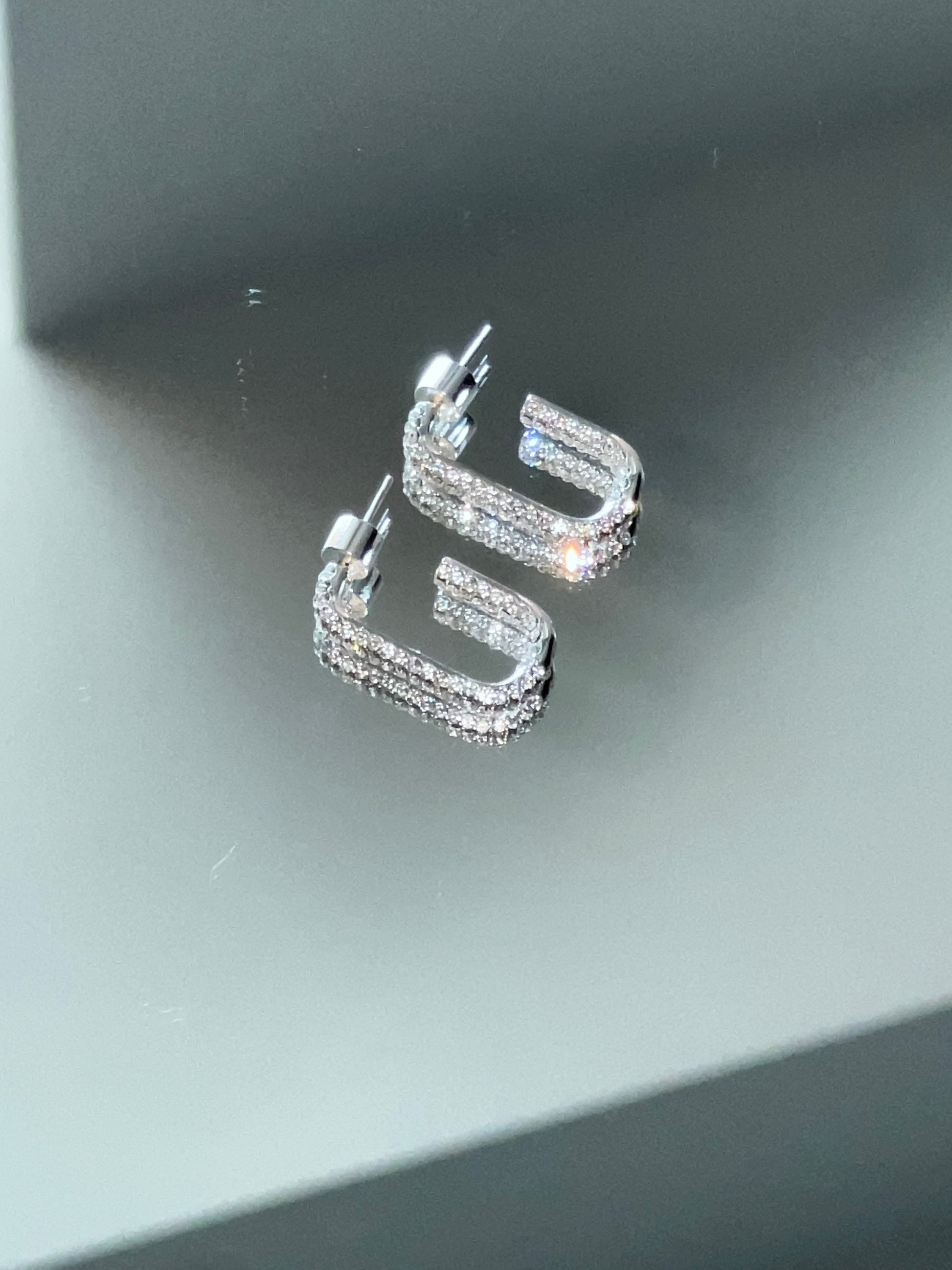 Silver Pave Link Semi Hoop